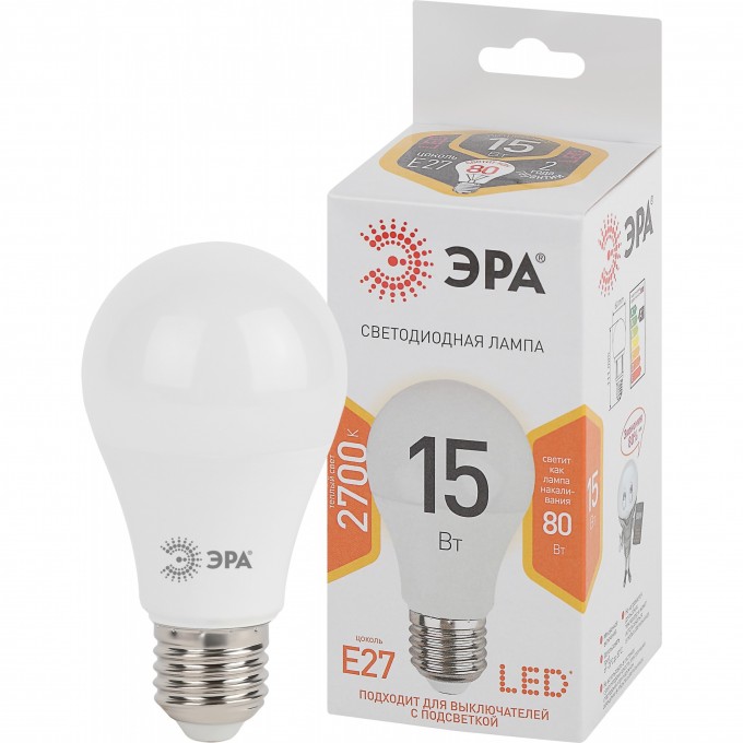 Бытовая светодиодная лампа ЭРА Серии Стандарт, создаёт яркое ровное освещение и экономит до 90% электроэнергии по сравнению с лампой накаливания с аналогичным световым потоком. Светит теплым светом с жёлтым оттенком - такая цветовая температура эффективна для отдыха и уютной атмосферы в доме. Используется в потолочных, настенных, настольных светильниках, в люстрах и бра. Мгновенно включается и не нагревается.
