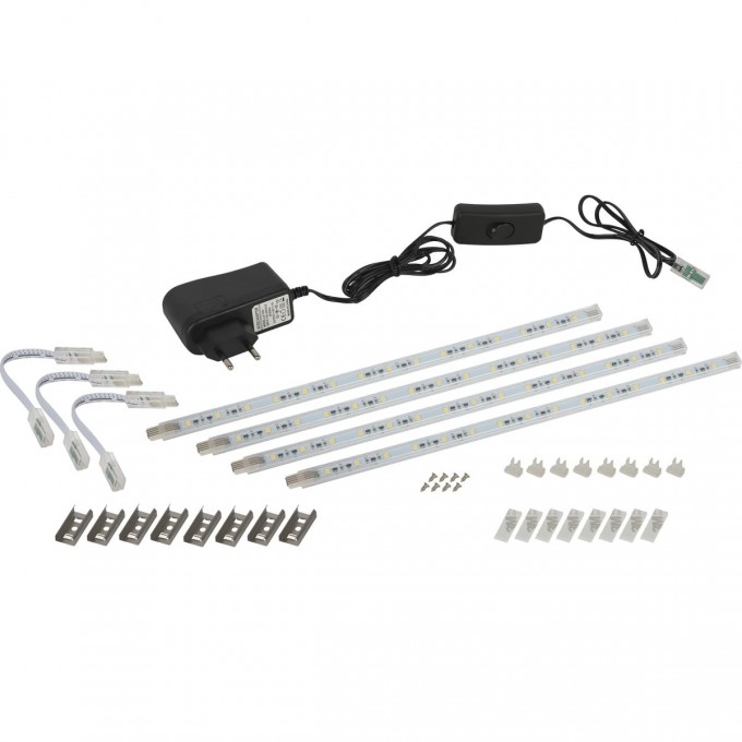 Модульная система, состоящая из 4-х светодиодных модулей. Мощность каждого модуля 2,5Вт. Цветовая температура 4000K. Комплектация: светильник, набор крепежных элементов, ссоед. кабель 3шт., источник питания 15Вт