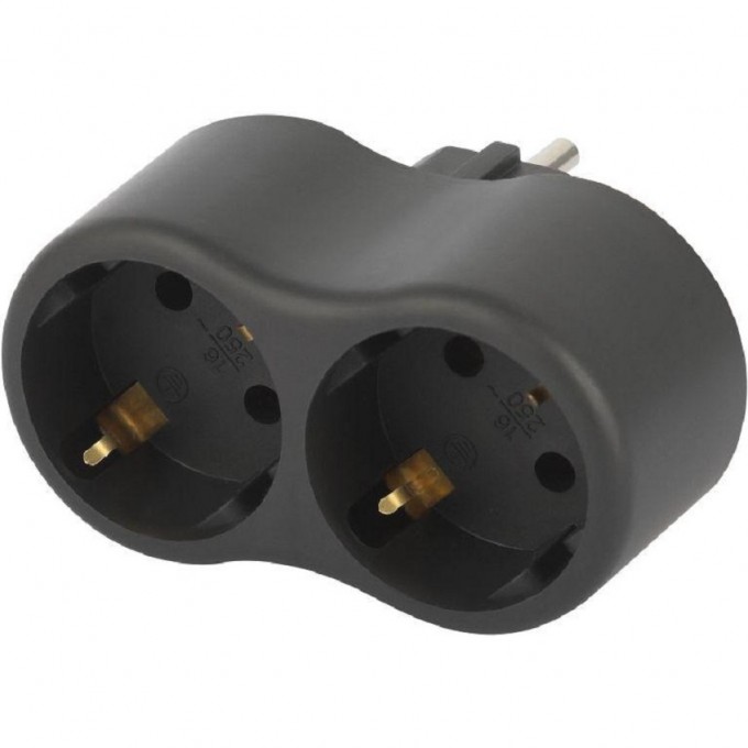 Разветвитель электрический ЭРА SPx-2e-B на 2 розетки с заземл. 16А черн. Б0059722.