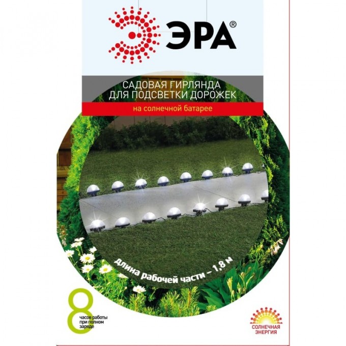 Светильник садовый ЭРА ГИРЛЯНДА для подсветки дорожек 3.8м (длина рабочей части 1.8м) 10LED на солнечной батарее