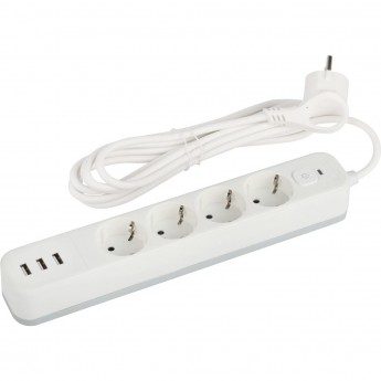 Удлинитель с сетевым фильтром ЭРА Б0059569 4х3м с заземлением 10А USF-4es-3m-3xUSBA-W +3xUSBA 3.1A с выключателем с базовой защитой белый