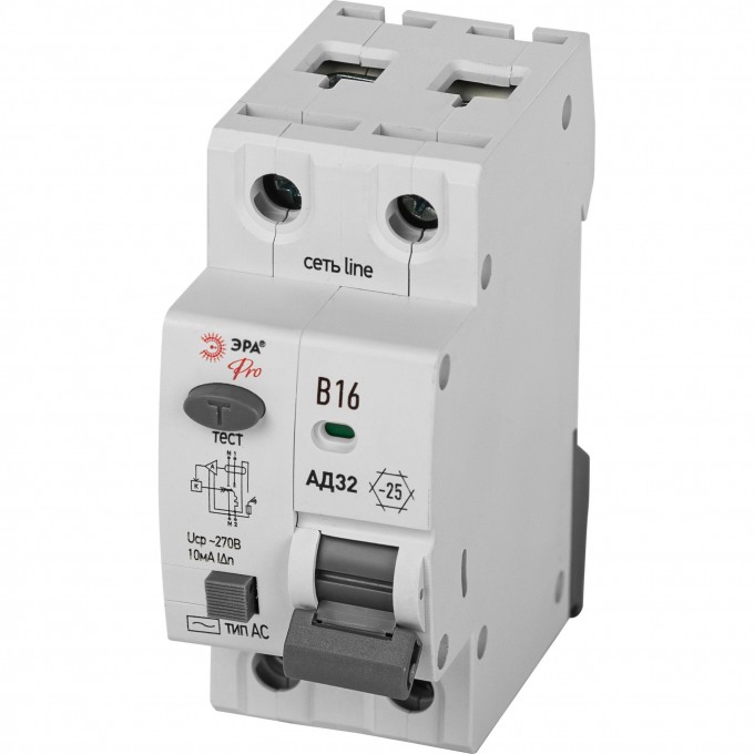 Выключатель автоматический дифференциального тока ЭРА PRO 1P+N B16 10мА тип АC защита 230В АВДТ 4.5кА B0057368